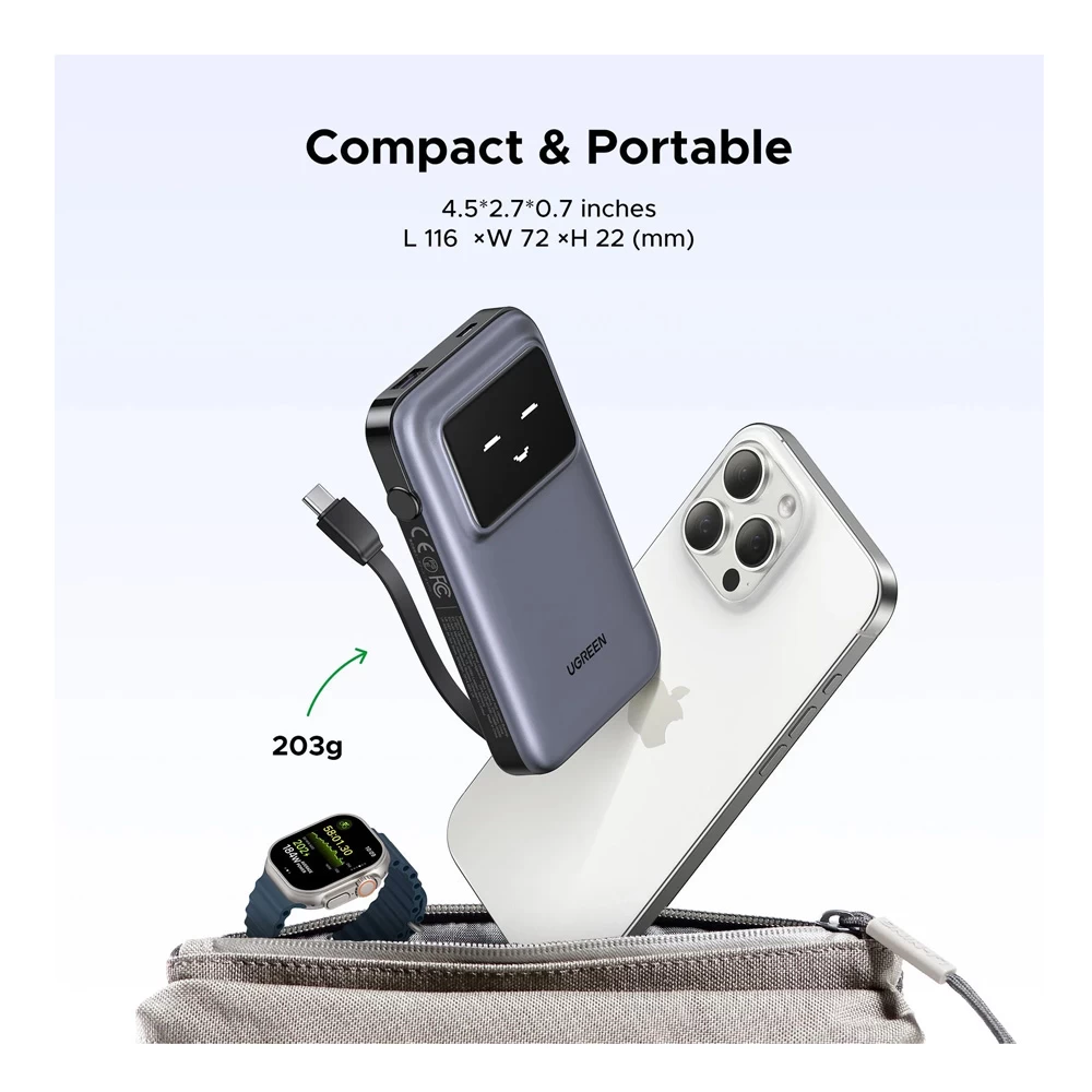 Acumulator extern Ugreen 10 10000mAh 30W Uno Series Cables Type-C Space Gray