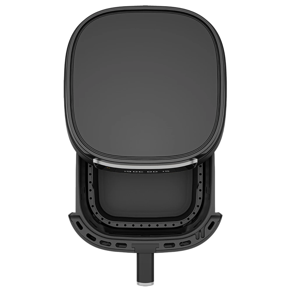 In interior exista acoperire antiaderenta: mancarea se lipeste mai putin, iar curatarea dupa gatit este mai simpla. Carcasa este din plastic, culoarea este negru: aerogrill-ul arata neutru si se potriveste bine intr-o bucatarie moderna. Dimensiunile 38,5 × 43,8 × 37,4 cm merita luate in calcul, mai ales daca vrei sa-l pastrezi pe raft sau intr-o nisa.