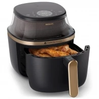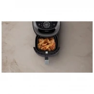 Aerogrill Philips NA322/00 este un mod comod de a gati acasa mancarurile preferate mai rapid si mai curat decat in cuptor, fara sa aglomerezi bucataria cu aparate in plus. Este un aerogrill compact, in carcasa neagra, potrivit pentru meniul zilnic: de la legume crocante si pui, pana la incalzire si coacerea portiilor mici.