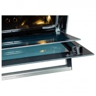 Cuptorul pe gaz de 71 l este potrivit atat pentru budinci de familie, cat si pentru tavi mari. Temperatura maxima de 275 C ajuta la rumenirea rapida a crustei, iar grill-ul pe gaz extinde posibilitatile, de la pui rumen pana la legume. Iluminarea interioara si usa cu sticla in doua straturi permit sa urmaresti gatirea fara pierderi inutile de caldura. Curatarea este traditionala: stergi peretii dupa racire.