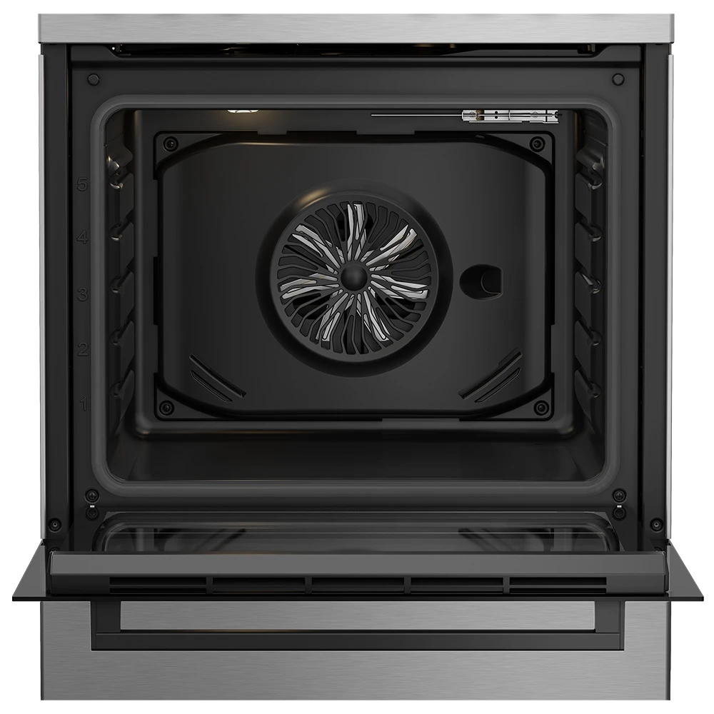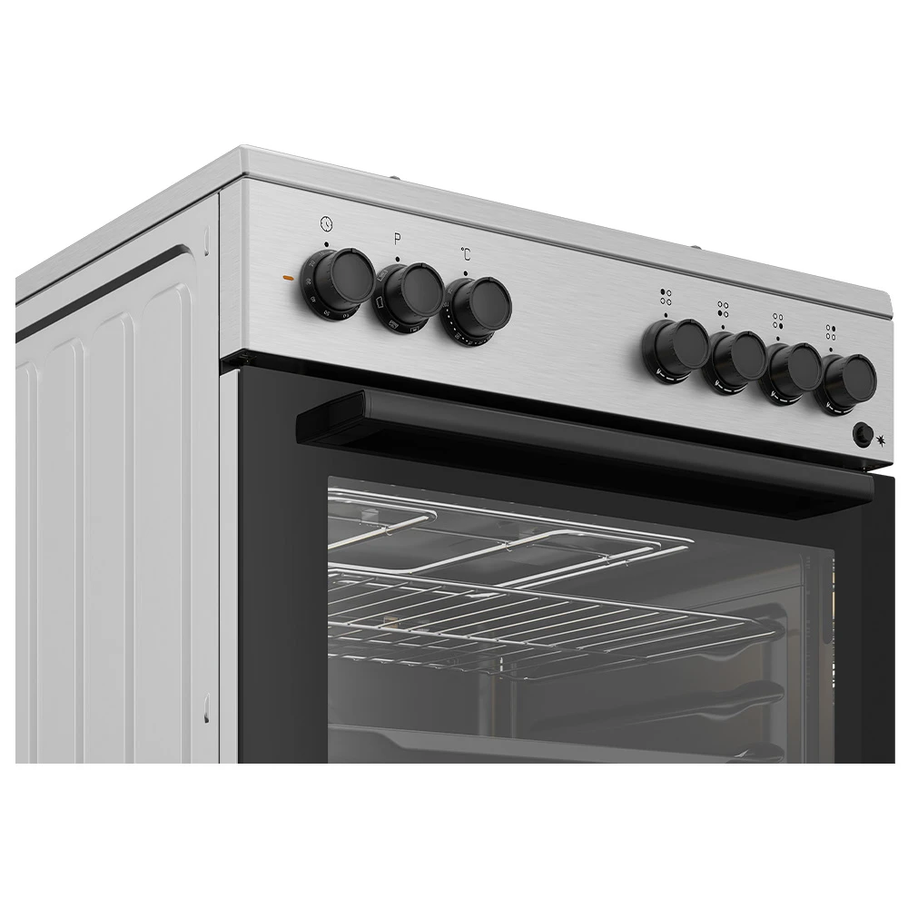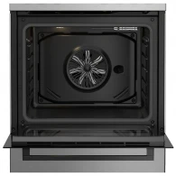 Schema mixta „gaz sus, electric jos” este comoda cand esti obisnuit cu reglaj instant, dar vrei coacere uniforma. Dimensiunile 60x60x85 cm il fac usor de integrat, iar greutatea de aproximativ 47,5 kg indica o constructie metalica solida. Finisajul inox se potriveste cu electrocasnicele moderne.