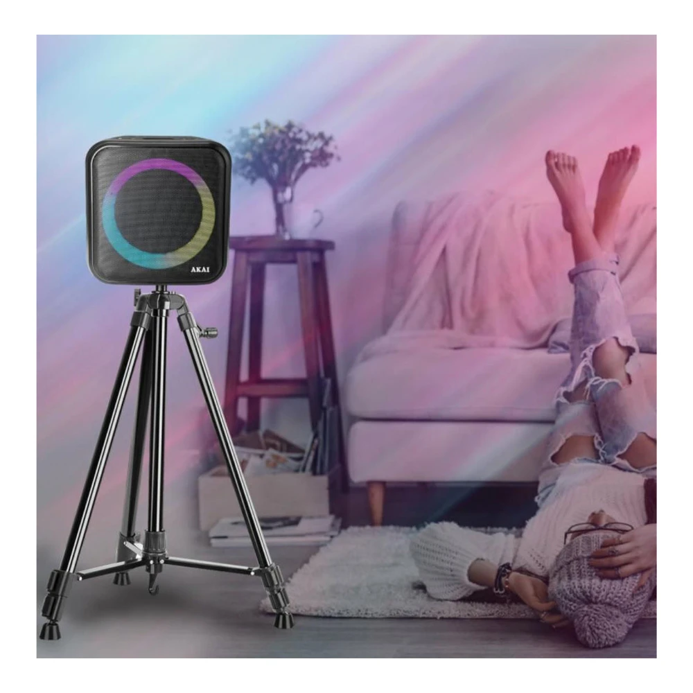 Akai ABTS-S6 reprezinta un sistem audio portabil complet, care combina mobilitatea, puterea si functiile de divertisment. Este alegerea potrivita pentru cei care cauta o boxa Bluetooth cu karaoke si iluminare LED pentru a crea atmosfera muzicala oriunde.
