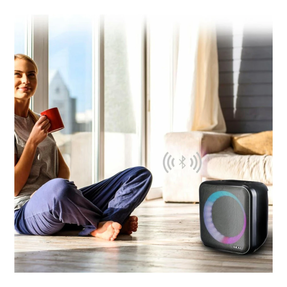 Puterea RMS de 20 W asigura un sunet clar si puternic, cu frecvente inalte bine definite si bass profund. Sistemul audio Akai ABTS-S6 poate fi utilizat atat in interior, cat si in aer liber – la picnic, in excursii sau la cabana. Carcasa compacta si designul practic faciliteaza transportul, iar iluminarea LED integrata creeaza o atmosfera dinamica si accentueaza ritmul muzicii.