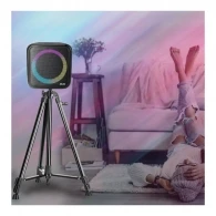 In pachet este inclus un suport tip trepied pentru pozitionarea optima a boxei si distribuirea uniforma a sunetului, precum si o telecomanda pentru control comod de la distanta. Acest lucru transforma modelul intr-o solutie practica pentru evenimente, prezentari sau timp liber activ. Interfetele variate si utilizarea intuitiva il fac potrivit pentru utilizatori de toate varstele.