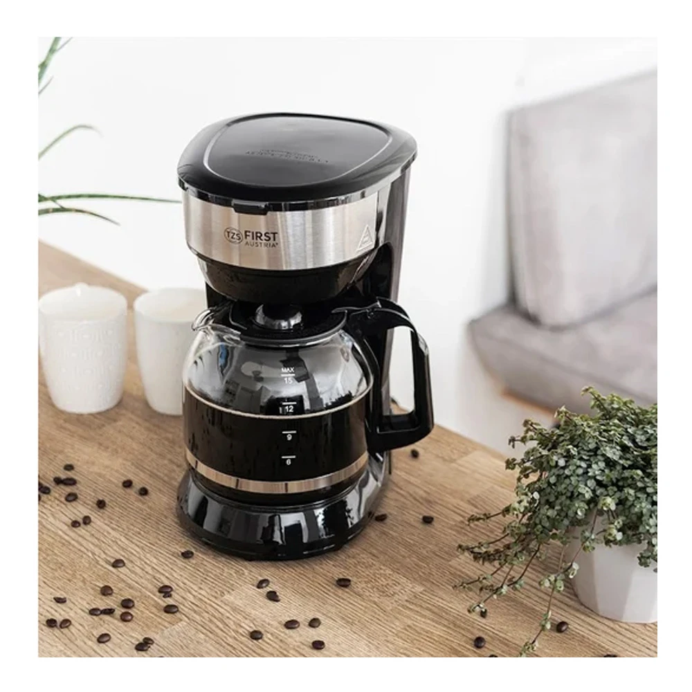 Cafetiera cu picurare First FA54595 este o alegere practica pentru cei care prefera cafeaua clasica la filtru din cafea macinata, acasa sau la birou. Puterea de 900 W incalzeste rapid apa, iar rezervorul de 1,8 l permite sa pregatesti dintr-o singura tura cafea pentru familie sau colegi.