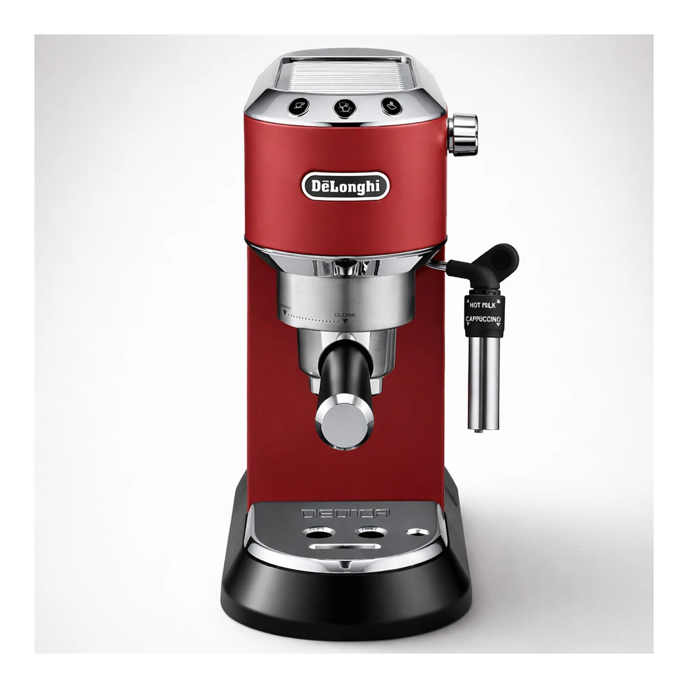 Cafetiera espresso DeLonghi EC685.R Dedica este o solutie eleganta si compacta pentru prepararea unui espresso italian autentic chiar la tine acasa. Datorita carcasei subtiri, cu o latime de aproximativ 15 cm, aparatul se potriveste perfect chiar si in bucatariile mici, combinand designul modern cu tehnologii profesionale de preparare a cafelei. Modelul este realizat intr-o nuanta rosie eleganta si dispune de carcasa metalica rezistenta, care ofera durabilitate si un aspect premium.