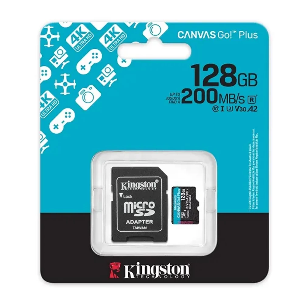 - 128GB microSDXC Canvas Go! Plus Gen4 (Class 10 UHS-I U3 (V30) with SD adapter R:200MB/s)
