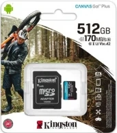 Card de memorie microSD 512GB Kingston Canvas Go! Plus, A2, 170Mbpsr, + SD adapter