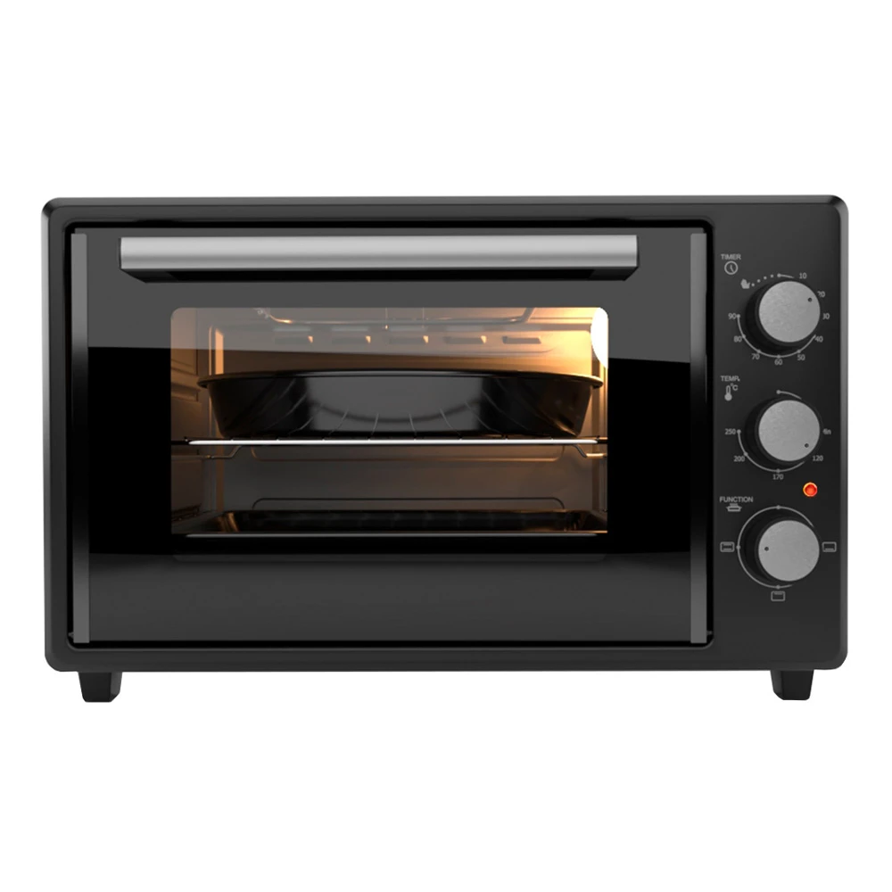 Camera interioara de 48 litri are acoperire emailata, ceea ce faciliteaza curatarea dupa utilizare. Carcasa metalica rezistenta este conceputa pentru utilizare frecventa. Usa rabatabila permite acces comod la cuptor, iar indicatorul de functionare arata cand aparatul este pornit.