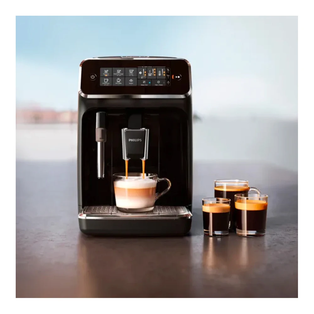 Philips EP322140 este o alegere buna pentru apartament, birou sau cadou pentru un iubitor de cafea: pregatesti espresso, doua portii simultan si bauturi cu lapte cu spuma manuala, atunci cand vrei atmosfera de cafenea. Alege cafea boabe sau macinata, transforma pauza zilnica intr-un mic ritual si pune masina de cafea Philips EP3221/40 in cos.