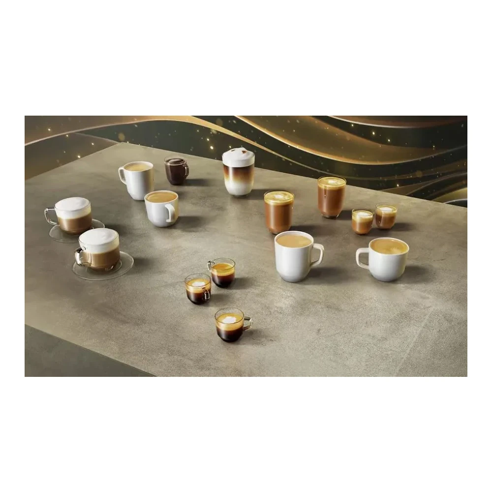 Pentru bauturi cu lapte, exista cappuccinator automat si recipient de lapte de 0,5 l – o solutie practica pentru cappuccino si latte fara spumare manuala. Rezervorul de apa de 1,7 l si compartimentul pentru boabe de 300 g reduc frecventa reumplerilor: comod pentru familie sau pentru un birou unde cafeaua se bea des.