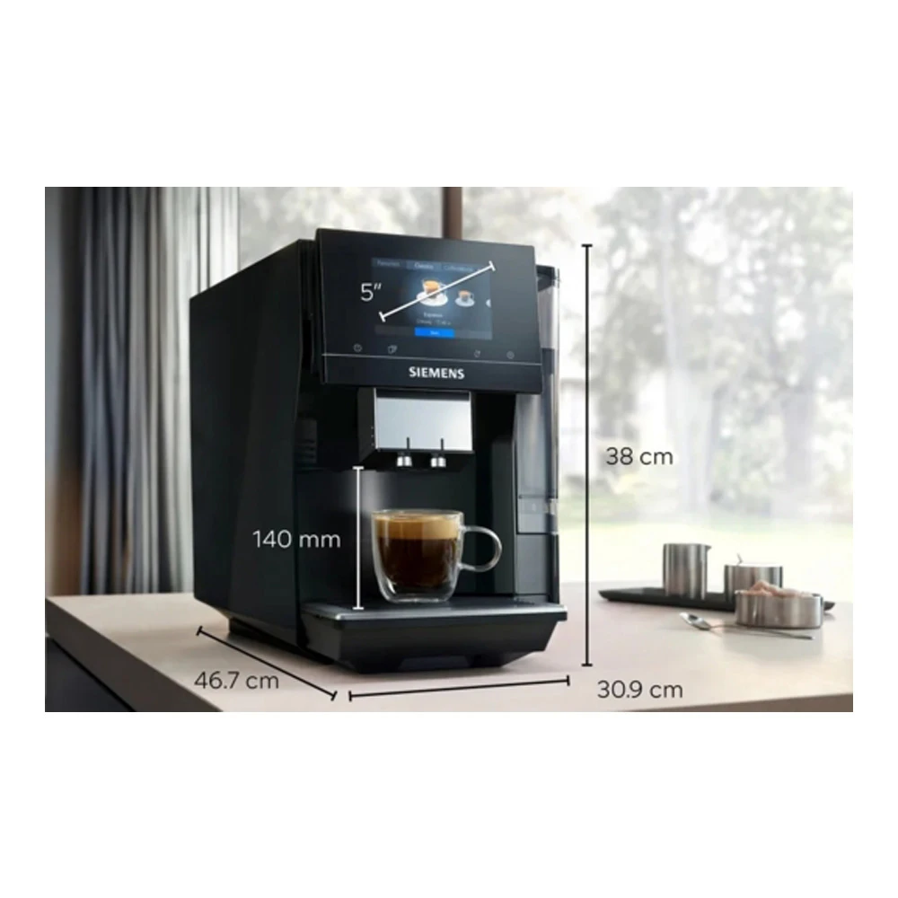 Masina de cafea espresso Siemens TP713R09 este gandita pentru cei care vor gust constant din boabe proaspat macinate acasa sau la birou. Pompa de 19 bar si termoblocul ajuta aparatul sa ajunga rapid la temperatura de lucru si sa scoata aroma curata. Carcasa neagra, independenta, se potriveste intr-o bucatarie moderna si nu cere incorporare.