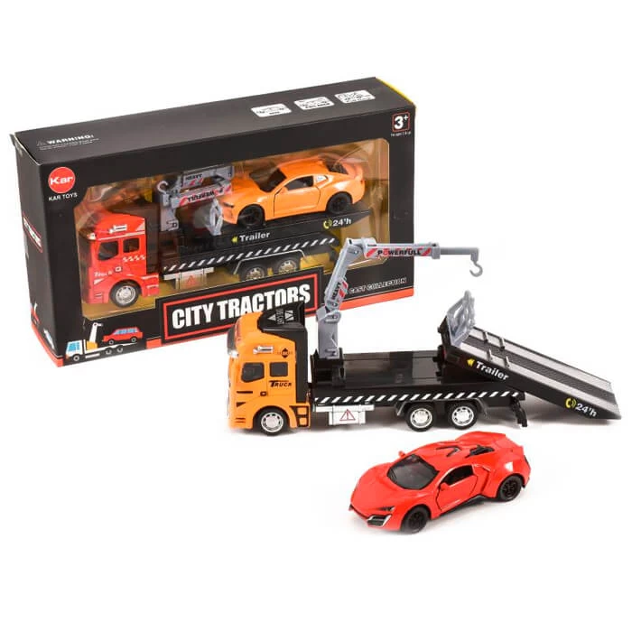 O replica realista a unui camion de remorcare si a unei masini metalice in dificultate este un set grozav pentru orice baiat pasionat de tehnologie. Masina este inertiala, camion din plastic masinuta din metal. China.