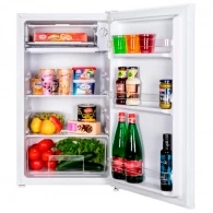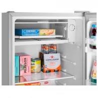 Model cu o singură ușă și congelator superior, ideal pentru garsoniere, birouri, case de vacanță sau camere de hotel. Consum redus, funcționare silențioasă și spațiu suficient pentru alimentele esențiale.