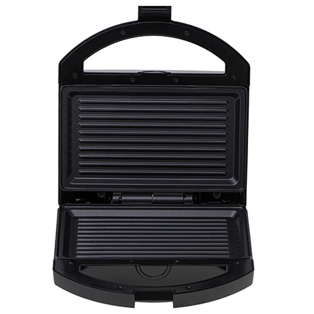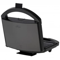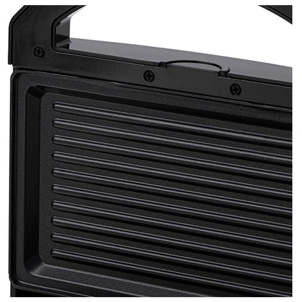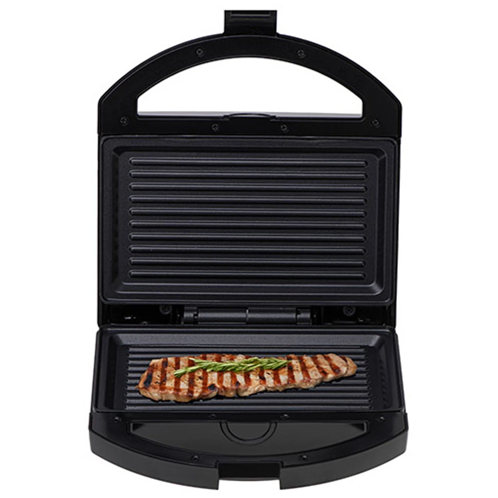 Dimensiunile 24×23×9,5 cm economisesc loc: aparatul incape chiar si pe o zona de lucru mica. Suprafata striata a placilor este practica pentru steak-uri, pui, carnati si legume la grill. Placile nu sunt detasabile, asa ca dupa racire le poti sterge cu un burete moale, fara a scufunda aparatul in apa.