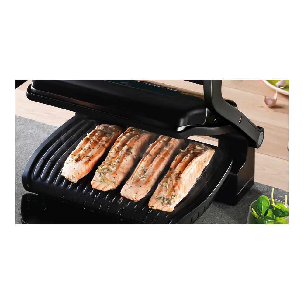 Este un gratar inchis: alimentele se rumenesc pe ambele parti simultan, economisind timp si oferind o gatire uniforma. Placile detasabile si stratul antiaderent fac gatitul mai simplu — mancarea nu se lipeste, iar portiile se intorc si se scot usor.