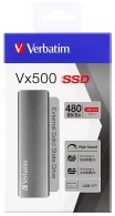 M.2 External SSD 480GB Verbatim Vx500 USB 3.1 Gen 2, Sequential Read/Write: up to 500/430 MB/s, Windows®, Mac, PS4 and Xbox One compatible, Light, Portable, Durable, Ultra-compact aluminum housing, Low power consumption