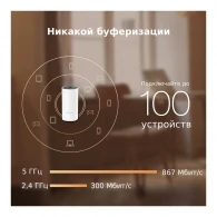 Sistemul functioneaza in benzile de 2.4 si 5 GHz si ofera viteze Wi-Fi de pana la 867 Mbit/s, fiind potrivit pentru streaming video, jocuri online, apeluri video si utilizare zilnica. Conexiunea prin Gigabit LAN de pana la 1000 Mbit/s asigura transfer stabil de date pentru dispozitivele care necesita viteza maxima.