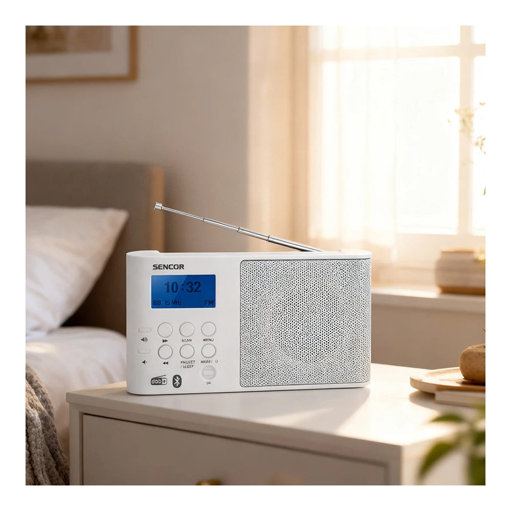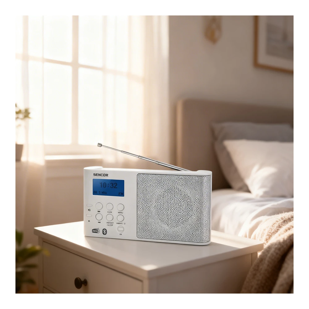 Sencor SRD7100W se potriveste cumparatorilor care apreciaza formatul compact, controlul simplu si functiile moderne intr-un singur корпус. Este o alegere buna pentru ascultarea zilnica a stirilor, muzicii si posturilor radio, atunci cand este nevoie de un aparat usor, ordonat si simplu de folosit. Un avantaj suplimentar este garantia oficiala de 24 de luni.