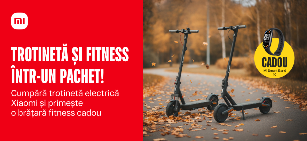 La achiziționarea unui scuter electric Xiaomi din lista de mai jos, cumpărătorul primește CADOU o brățară fitness Xiaomi Smart Band 10.