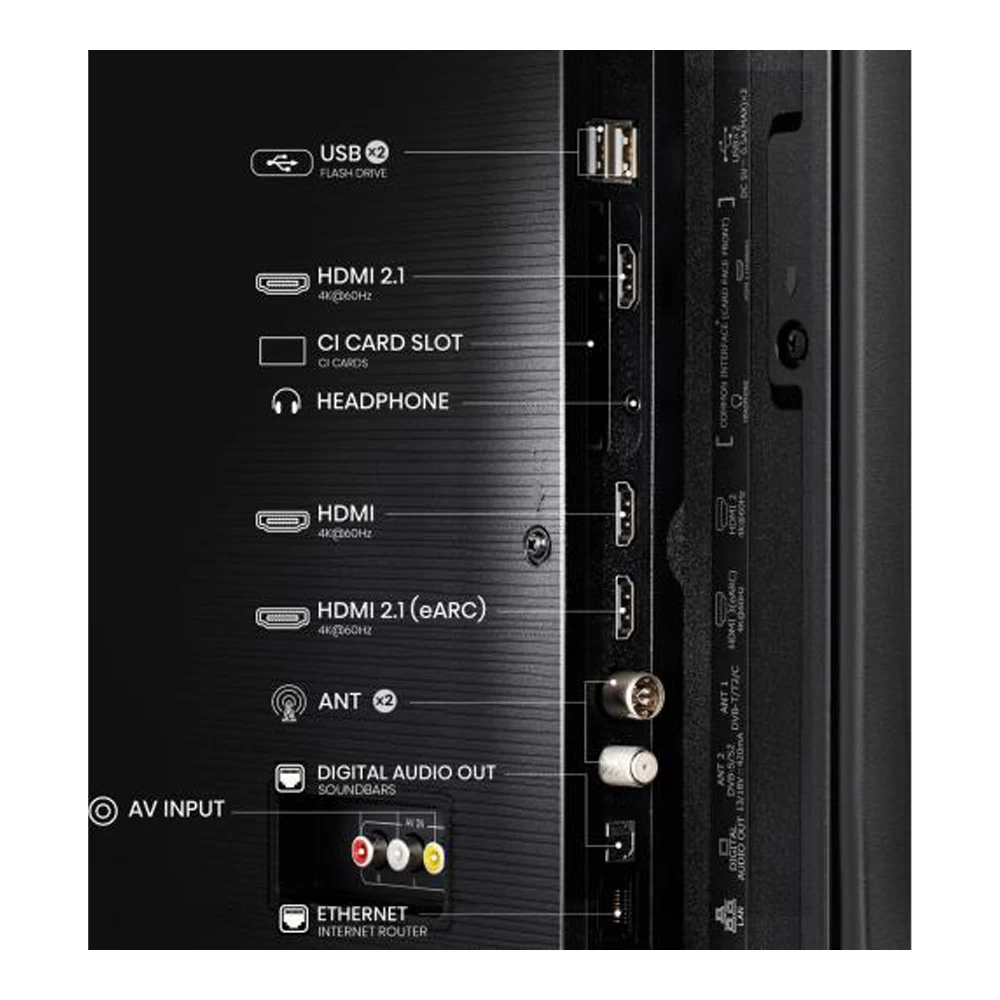- Dolby Audio, Dolby MS12, DTS Virtual:X, EzPlay2.0, NICAM Stereo, TV Mode
