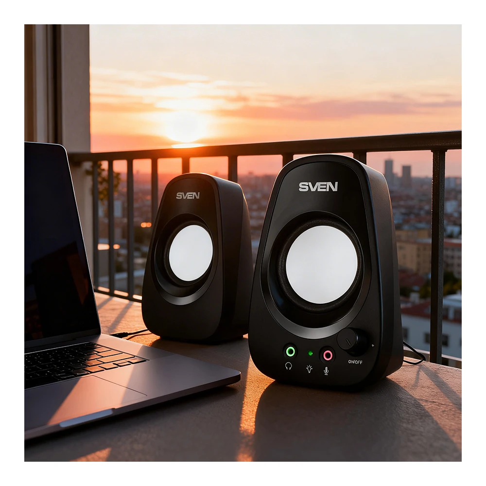 Главное преимущество Sven 190 Black — сочетание простоты и функциональности. Колонки легко подключаются к компьютеру или ноутбуку через стандартный 3.5 мм разъем, а питание осуществляется через USB, поэтому не требуется отдельный блок питания. Это особенно удобно для рабочего стола с ограниченным пространством, для учебного места школьника или студента, а также для офиса, где важны аккуратность и быстрый старт без сложной настройки. Компактные размеры 13.5 x 9 x 9 см помогают без труда разместить систему рядом с монитором.