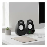 Корпус изготовлен из пластика, а вес составляет 0.426 кг, поэтому акустику легко переставлять при необходимости. Модель подойдет пользователям, которым нужен доступный и понятный в использовании вариант для базовых мультимедийных задач без лишних функций. Черный цвет корпуса универсален и хорошо сочетается с современной компьютерной техникой. Дополнительным плюсом станет гарантия 24 месяца, указанная на странице товара.