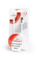 Cable microUSB2.0 Cotton braided - 1.8m - Cablexpert CCB-mUSB2B-AMBM-6-S, Silver, Professional series, USB 2.0 A-plug to Micro B-plug, blister