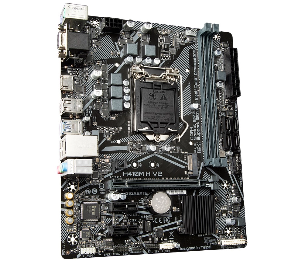 GIGABYTE H410M H V2, Socket 1200, Intel® Q470 (10th Gen CPU), Dual 2xDDR4-2933, CPU Intel graphics, VGA, HDMI, 1xPCIe X16, 4xSATA3, RAID, 1xM.2, 2xPCIe X1, ALC887 HDA, GbE LAN, 4xUSB3.2, RGB Led, mATX