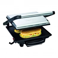 Корпус выполнен из нержавеющей стали, выглядит аккуратно в серебристом цвете и хорошо переносит ежедневное использование. Габариты 36,3×32,2×10,8 см помогают разместить гриль даже на небольшой столешнице, а вес 0,82 кг делает его удобным для хранения и переноски. Длина шнура 1 м подходит для большинства кухонных розеток, а гарантия составляет 24 месяца.