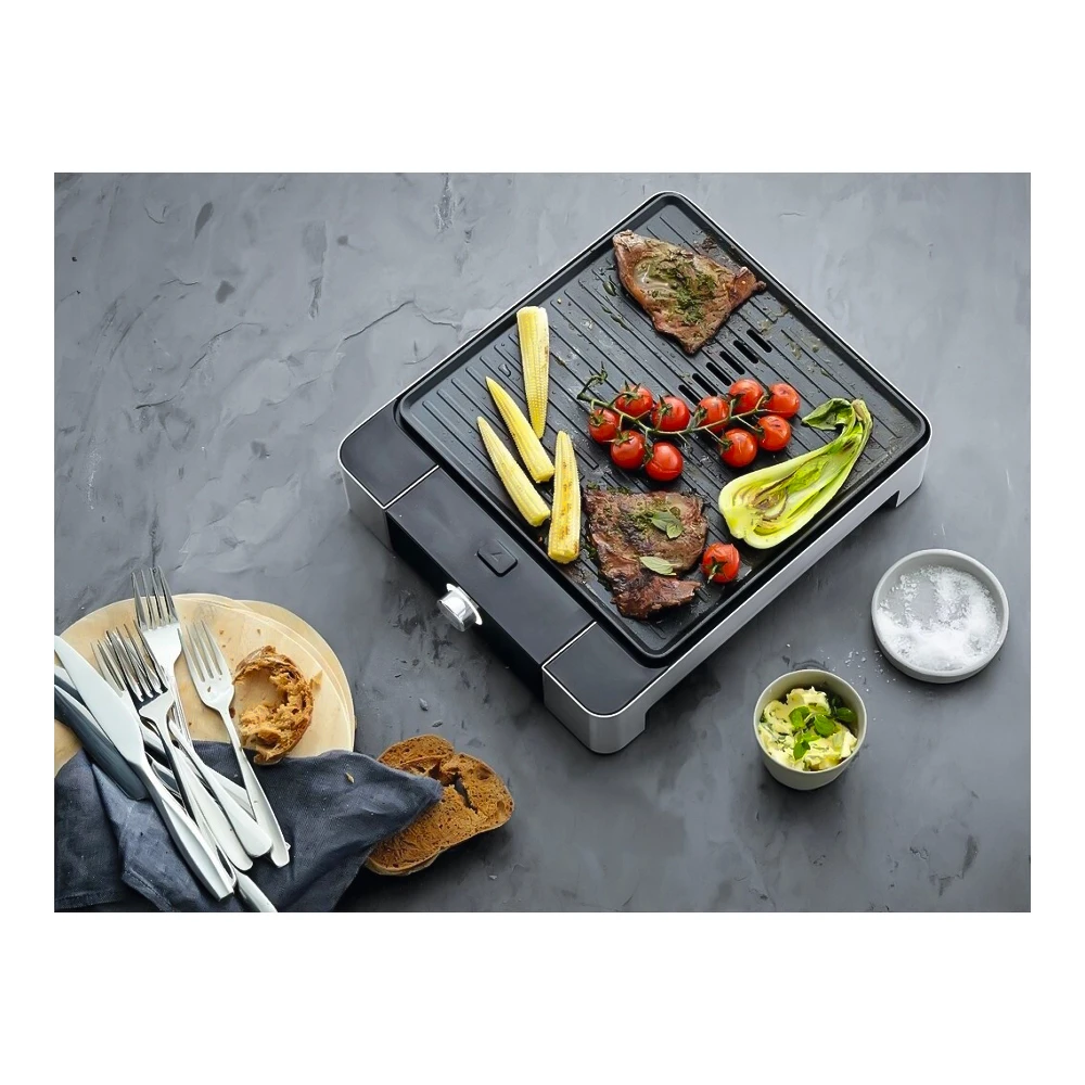 Длина шнура 1,2 м удобна для стандартной столешницы, а серебристый цвет хорошо сочетается с техникой в стиле inox. Здесь нет лишних аксессуаров и индикаторов — всё максимально просто и надёжно. Используйте WMF 415190011 для быстрых завтраков (тосты на гриле, овощи, сосиски), семейных ужинов и лёгких перекусов, когда хочется «как с гриля», но без выезда на природу.