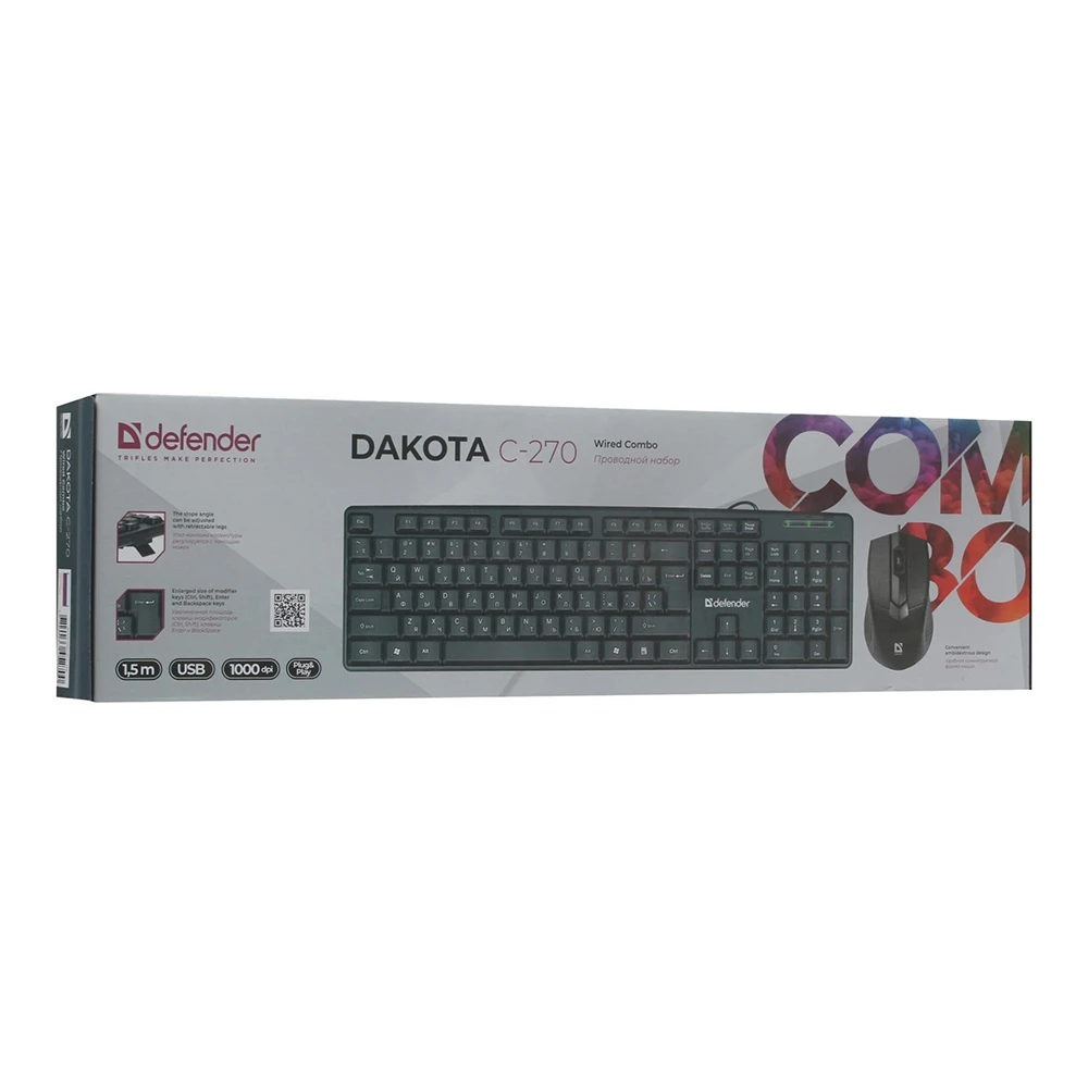 Defender DAKOTA C-270 произведен в Китае и поставляется с гарантией 24 месяца. Если вы хотите купить надежный проводной комплект клавиатура и мышь с USB-подключением и русско-английской раскладкой, оформляйте заказ на Bomba.md и выбирайте удобный способ получения.