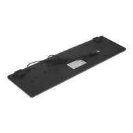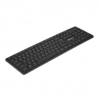 Клавиатура мембранная, в пластиковом корпусе черного цвета с серыми элементами. Длина кабеля — 1,5 м, тканевой оплетки нет; подсветка также отсутствует. Габариты (ВхШхГ): 1,5×43,6×14,4 см, вес — 0,5 кг, поэтому аксессуар легко разместить даже на компактном столе. Производство — Китай, гарантия — 24 месяца.