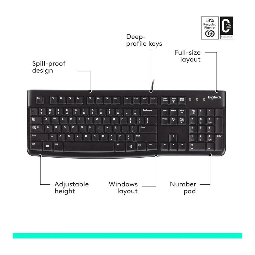 Logitech K 120 US подходит для набора текста, переписки, учёбы и офисной рутины: отчётов, CRM и бухгалтерских программ, где важен цифровой блок. Это вариант «подключил и работает» для настольного ПК или моноблока. Учтите: влагозащитного корпуса нет, поэтому для долгой службы лучше держать напитки подальше от рабочей зоны. Гарантия — 24 месяца, производство — Китай. Сегмент — дом и офис.