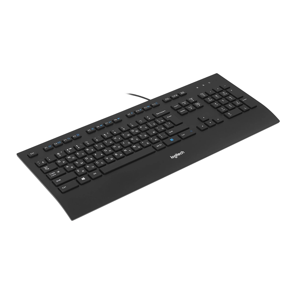 Клавиатура проводная Logitech K280e — надежная мембранная клавиатура для офиса и дома, когда важны стабильное соединение и понятная эргономика. Подключение по USB работает по принципу plug-and-play: просто вставьте кабель в порт, и можно сразу печатать без установки драйверов и дополнительного ПО.