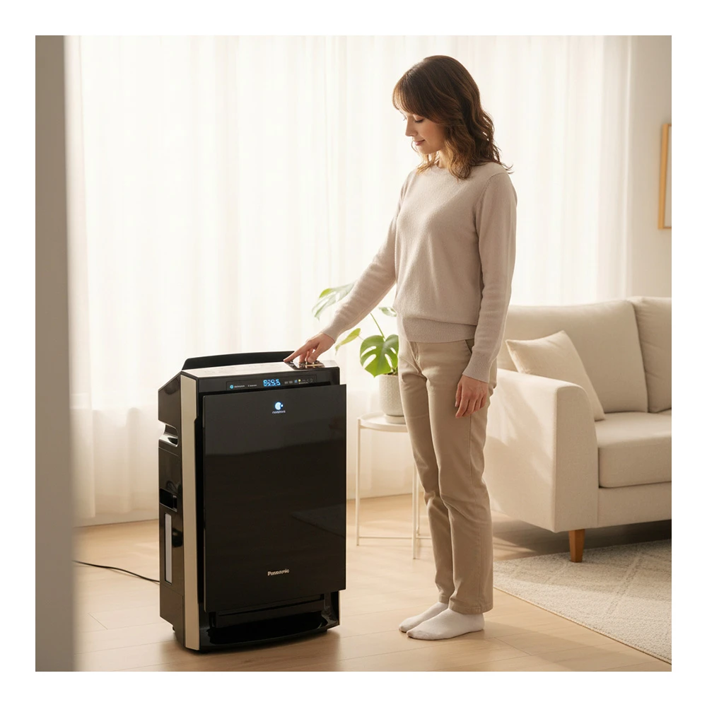 Сильная сторона этой модели — многоступенчатая обработка воздуха. На странице Bomba указаны 4 фильтра: предварительный, дезодорирующий, увлажняющий и HEPA, а также фильтрационный тип очистки. Такая конфигурация особенно удобна для повседневного использования в квартире, где нужно уменьшить количество пыли, освежить воздух и поддерживать более приятный микроклимат. Дополнительным преимуществом серии Panasonic F-VXR50R являются технологии ECONAVI, 3D-циркуляция воздушного потока и функция увлажнения, которые Panasonic перечисляет на официальной странице линейки.