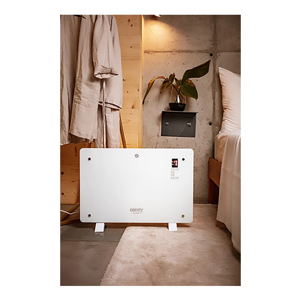 Конвектор Camry CR7721 — практичное решение для дополнительного обогрева комнаты, кухни, кабинета или дачи площадью до 15 м2. Модель сочетает мощность 1500 Вт, современное электронное управление и лаконичный белый дизайн, который легко вписывается в домашний интерьер. Благодаря ТЭНу и двум уровням нагрева 750/1500 Вт, этот конвектор помогает быстрее создать комфортную температуру именно тогда, когда это необходимо.
