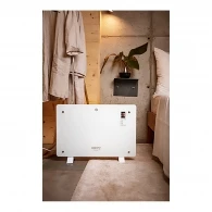 Корпус выполнен из стекла, поэтому модель выглядит аккуратно и современно. Белый цвет подчеркивает универсальность устройства и позволяет использовать его как в жилых, так и в рабочих пространствах. Наличие ножек-колесиков делает конвектор более мобильным: его проще перемещать из одной комнаты в другую без лишних усилий. Размеры 50x69.5x19.5 см помогают разместить прибор даже там, где важно рационально использовать пространство.