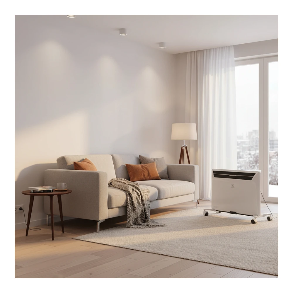 Конвектор Electrolux ECHAGI1500 — практичное решение для дополнительного или основного обогрева небольших помещений площадью до 15 м2. Модель оснащена нагревательным элементом ТЭН и имеет мощность 1500 Вт, что делает ее подходящей для спальни, кабинета, кухни, детской или дачи в межсезонье. Электронный термостат и электронный регулятор мощности помогают точнее поддерживать комфортную температуру без лишних перепадов тепла.