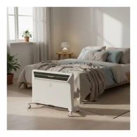 Эта модель удобна в повседневном использовании благодаря трем режимам работы, таймеру и цифровому дисплею. Пользователь может выбрать более деликатный нагрев на 750 Вт или включить полную мощность 1500 Вт, адаптируя работу прибора под температуру в комнате и личные предпочтения. Индикация включения и работы делает управление понятным, а длина сетевого шнура 1,5 м добавляет гибкости при установке.