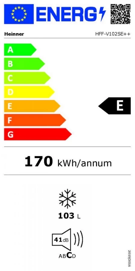 Морозильная камера Heinner HFF-V102SE++ / 103 л / 83.8 см / E / Серебристый