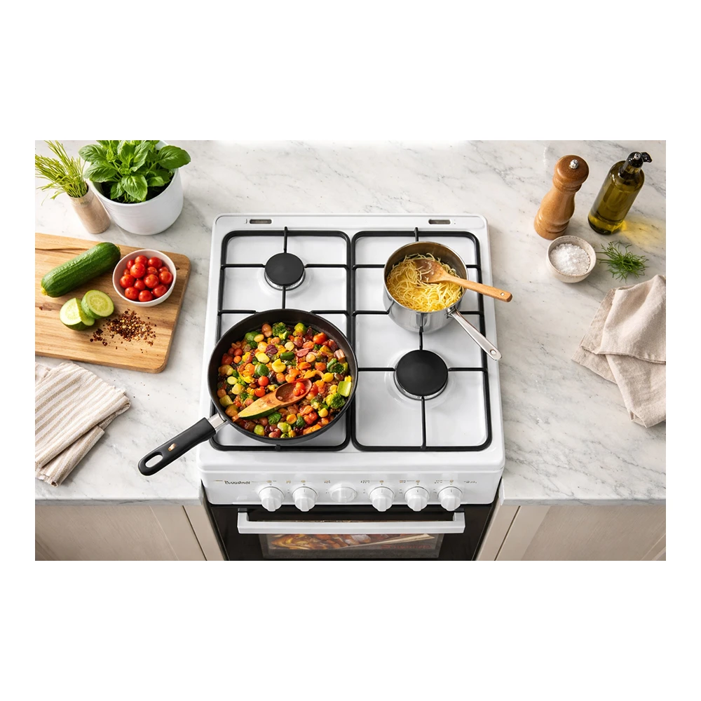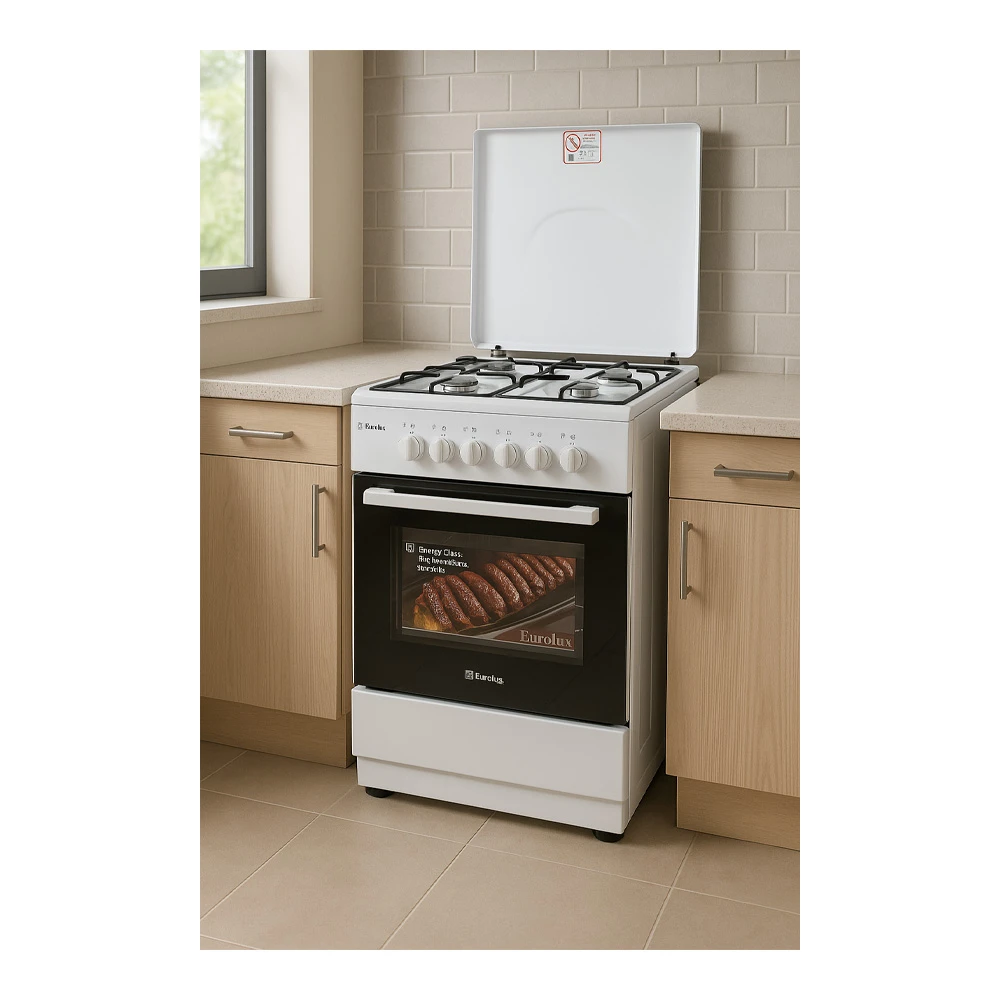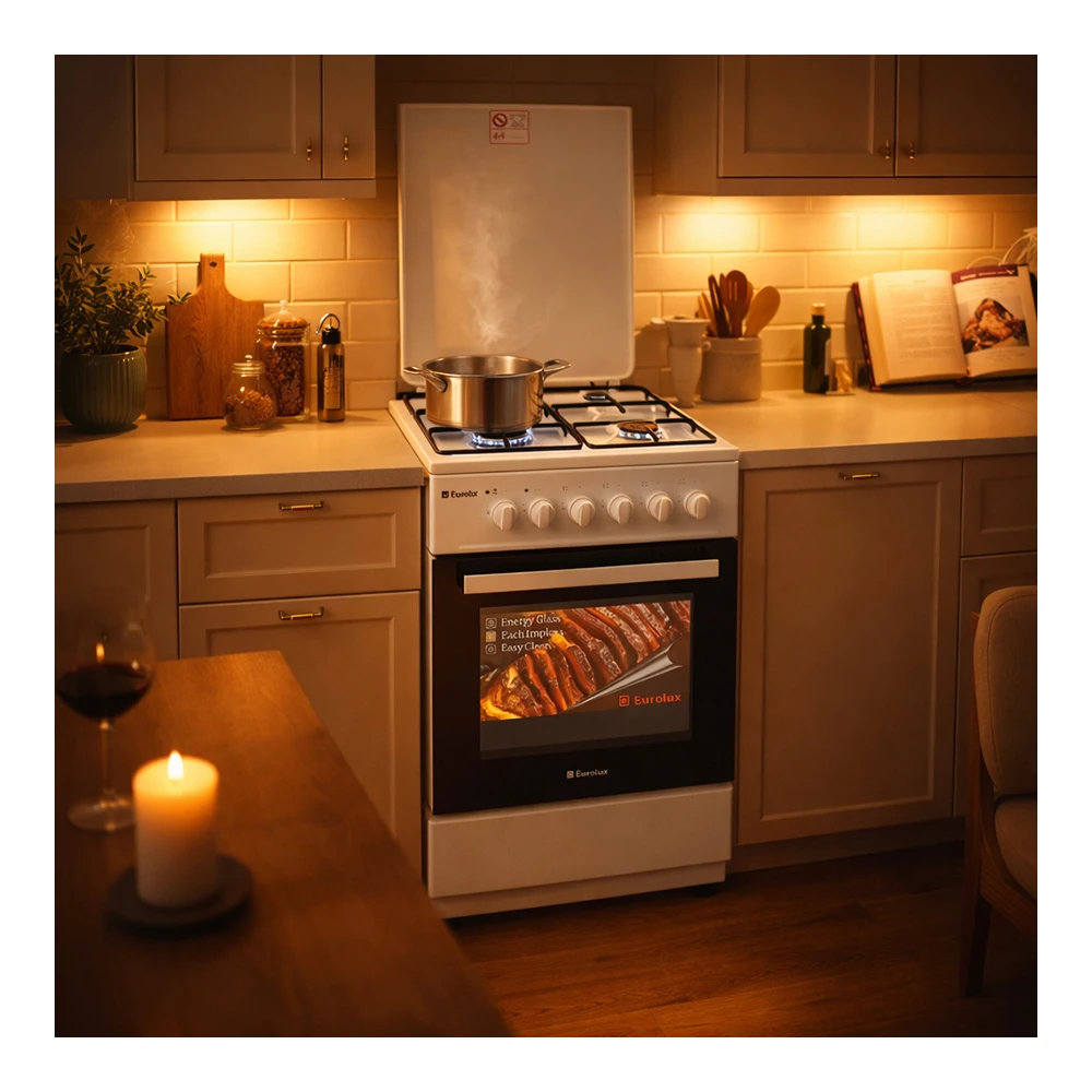 Газовая плита Eurolux TE5540IW — практичное решение для кухни, где важны компактность и полноценная духовка. При ширине 50 см и глубине 60 см она легко становится даже в небольшой нише, а классический белый цвет и металлический корпус аккуратно вписываются в любой интерьер. Габариты 85×50×60 см позволяют планировать установку без сюрпризов, а продуманная конструкция подходит и для квартиры, и для дачи.