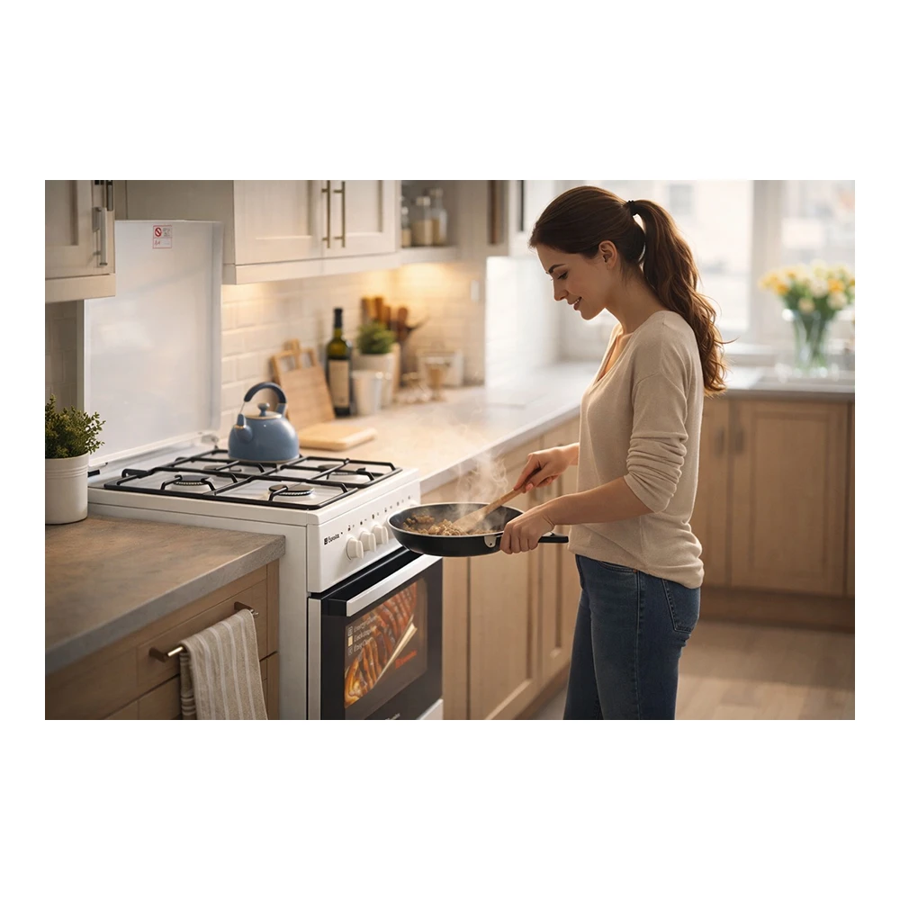 Модель рассчитана на семейные ужины и быстрые будни: на четырех конфорках можно одновременно варить суп, готовить гарнир и соус. Ширина 50 см помогает экономить место, а высота 85 см соответствует привычному уровню столешницы. Класс энергопотребления A (по старой маркировке) делает использование электрической духовки более экономичным. Для чистоты достаточно мягкого средства и губки — эмалированные поверхности и решетки не требуют сложного обслуживания.