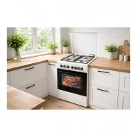 Для безопасности предусмотрен газконтроль плиты. Дверца духовки со стеклом 2-х слойная — это помогает удерживать тепло внутри и делает использование более комфортным. Корпус выполнен из металла, вес модели 52,5 кг. Габариты (ВхШхГ): 85×60×60 см. Класс энергопотребления: A (старый тип маркировки). В комплекте — 1 противень.