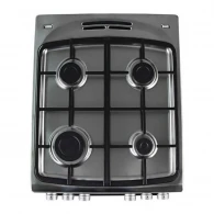 На рабочей поверхности — 4 газовые конфорки с электроподжигом: удобно запускать пламя без спичек и зажигалок. Чугунные решетки выдерживают ежедневные нагрузки и помогают ровно распределять вес кастрюль и сковород.