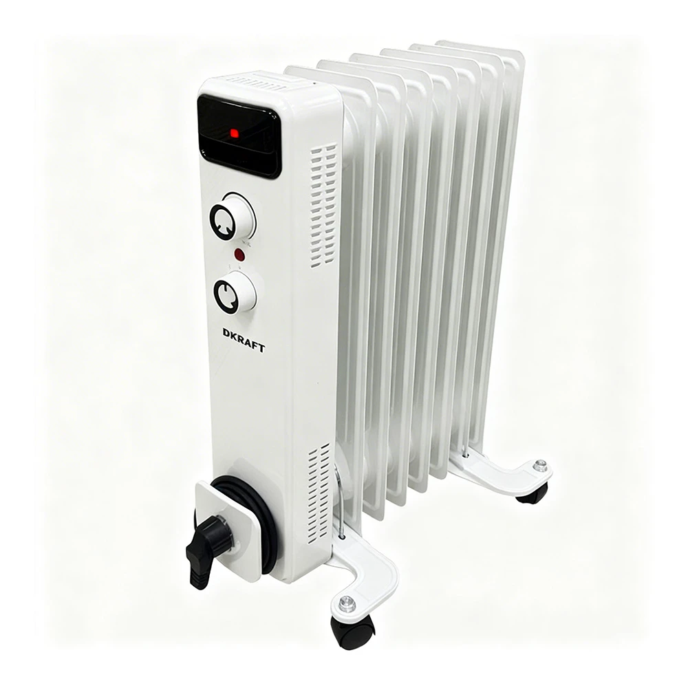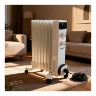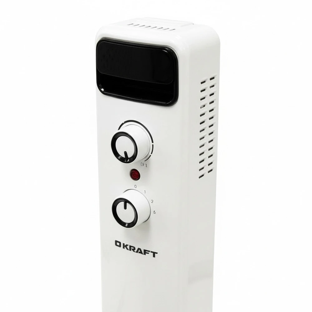 Kraft KF-OR715W подойдет для спальни, детской, кабинета, кухни или дачи, когда нужен локальный источник тепла без сложной установки. Радиатор выполнен в 6-секционном формате, что делает его удобным для ежедневного бытового использования. Для комфортной эксплуатации предусмотрены индикация включения и работы, термостат и регулятор мощности, поэтому пользователь может контролировать нагрев и поддерживать комфортную температуру в течение дня.