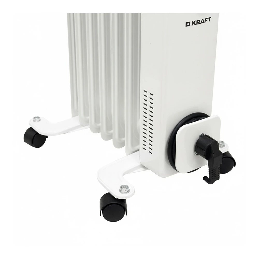 Масляный радиатор Kraft KF-OR715W — практичное решение для обогрева небольших комнат, где важны стабильное тепло, простое управление и удобное перемещение. Модель относится к типу масляных радиаторов, оснащена ТЭН-нагревателем, имеет мощность 1500 Вт и рассчитана на помещение площадью до 15 м2. Белый корпус легко вписывается в домашний интерьер, а три режима работы помогают выбрать подходящую интенсивность нагрева под текущую погоду и размер комнаты.