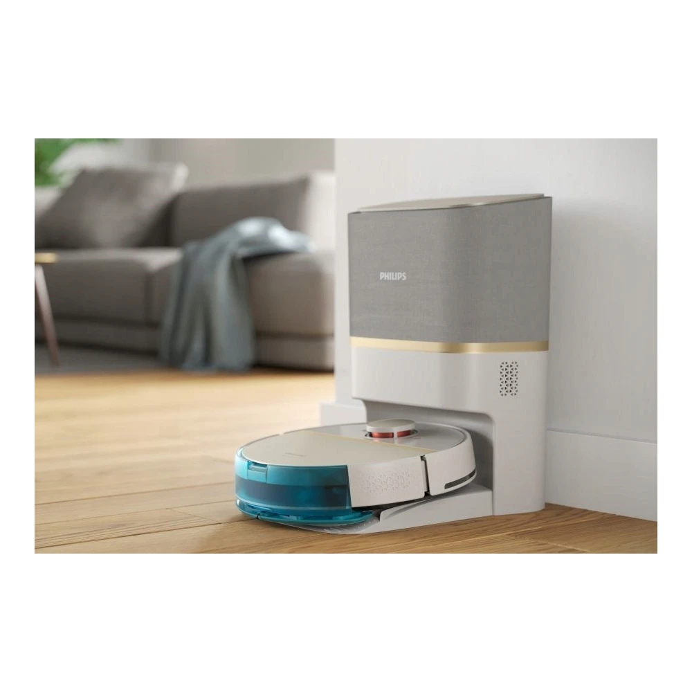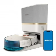 Управление осуществляется через мобильное приложение Philips HomeRun, в котором доступны функции картографирования, настройки зон уборки, установки виртуальных границ и планирования расписания. Для безопасной эксплуатации предусмотрены датчики препятствий и перепада высоты.