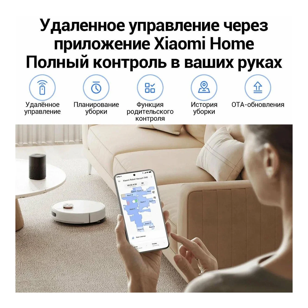 Xiaomi Vacuum S40 EU поддерживает несколько сценариев уборки и настройку параметров через Xiaomi Home: уборка по комнатам и зонам, расписания, виртуальные стены и ограниченные области, а также сохранение карт для многоэтажных помещений. Робот способен преодолевать пороги высотой до 20 мм и оснащен датчиками, предотвращающими падение со ступенек.