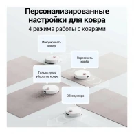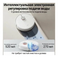 Для влажной уборки предусмотрена комбинированная система пылесоса и протирки пола с электронным контролем подачи воды. В приложении доступны 3 уровня расхода воды, а бак для воды рассчитан на 270 мл, что удобно для регулярной протирки твердых полов без лишних перезаправок.